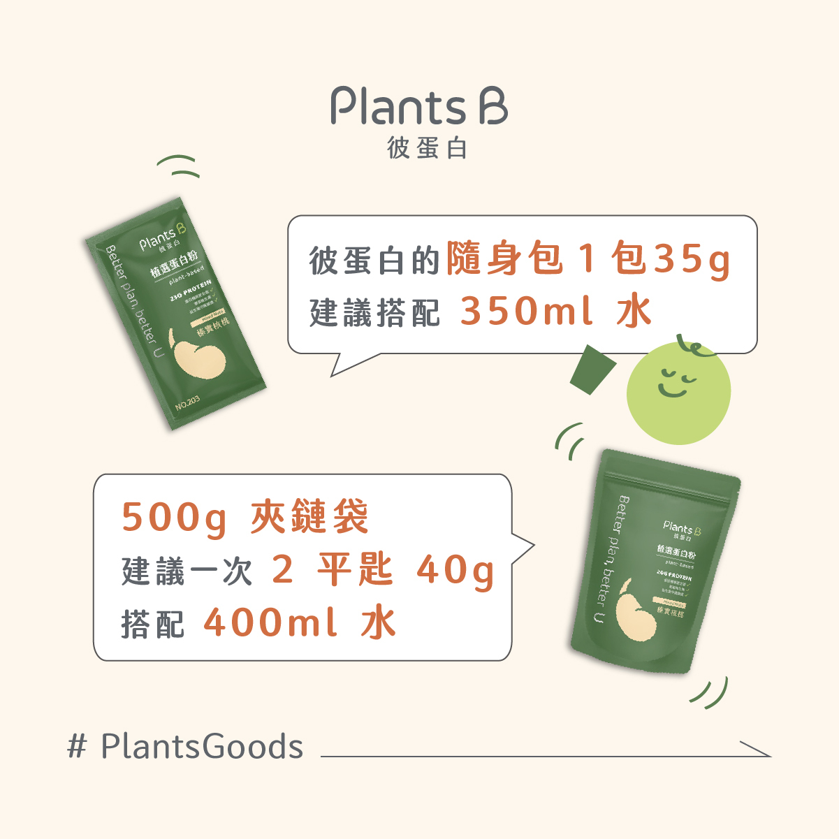 35g 植物蛋白粉 → 建議搭配約 350 ml 水