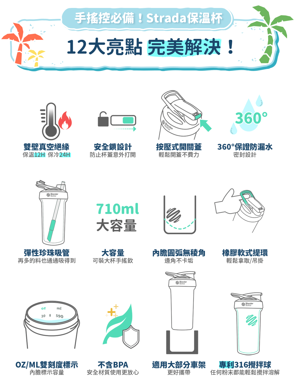 BlenderBottle® Strada™Sleek不鏽鋼|24oz |海灘ICON